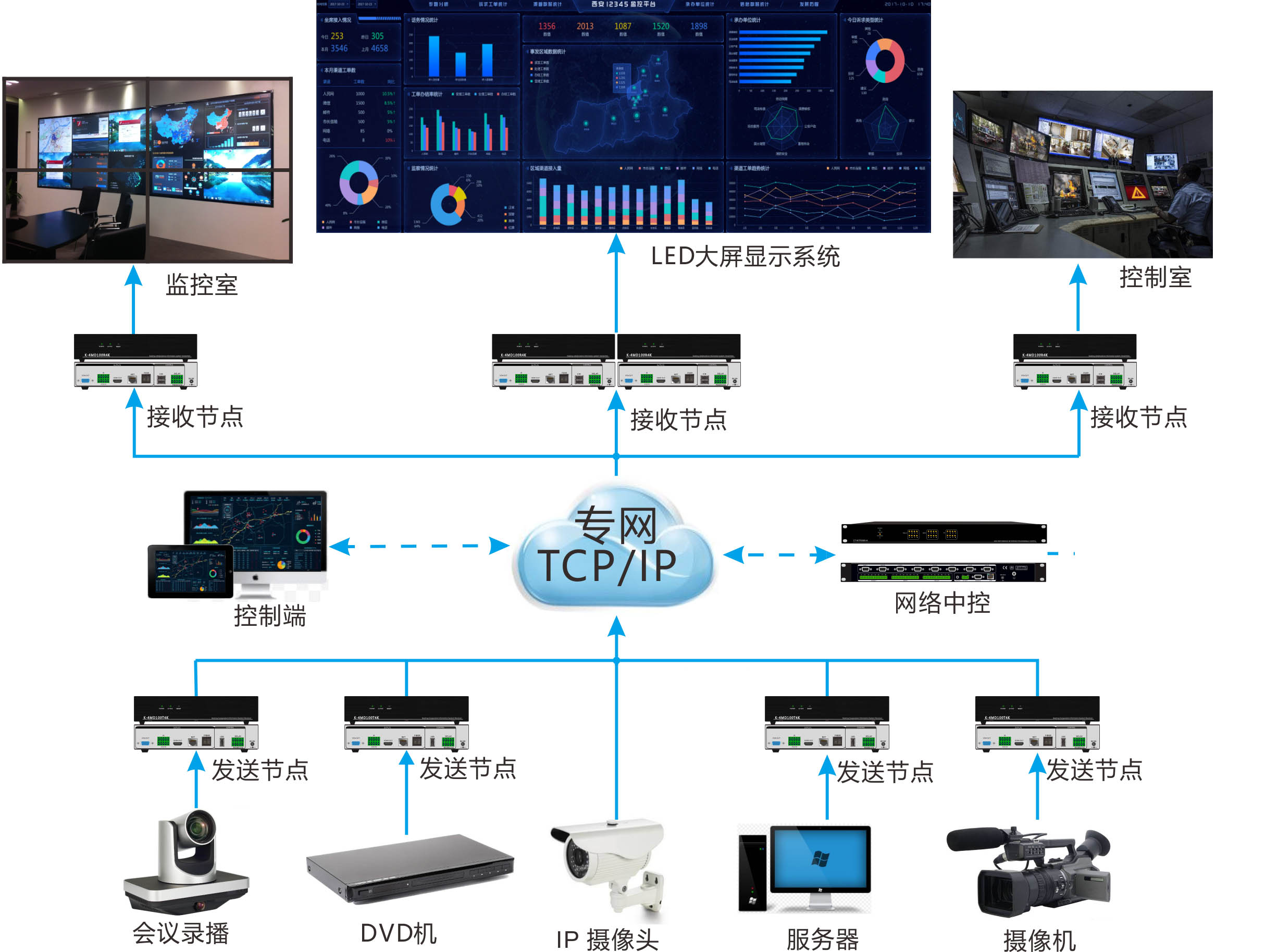 分布式中控系統(tǒng)是通過網(wǎng)絡(luò)進(jìn)行部署,通過管理平臺對 指揮中心 多個會議室進(jìn)行單獨(dú)、統(tǒng)一控制管理 , 通過PC、IPAD等控制終端對會議室設(shè)備進(jìn)行智能化統(tǒng)一管控 。