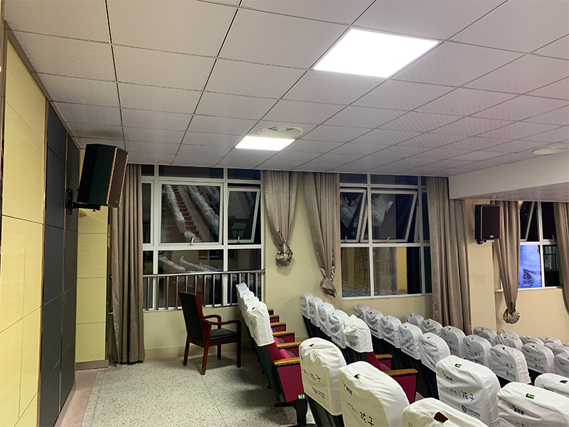 專業擴聲系統簡單來說就是把聲音信號放大,主要由聲源、音頻處理設備、功放及揚聲器系統組成。通過計算會議室的音響場地系數進行設計,保證會議室每個角落的聲場聽覺均勻,音響效果達到語言清晰、無失真、聲場分布均勻。