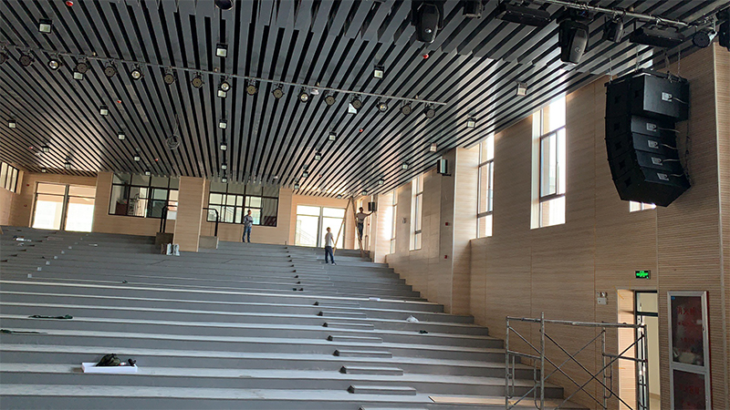 專業擴聲系統簡單來說就是把聲音信號放大,主要由聲源、音頻處理設備、功放及揚聲器系統組成。通過計算會議室的音響場地系數進行設計,保證會議室每個角落的聲場聽覺均勻,音響效果達到語言清晰、無失真、聲場分布均勻。