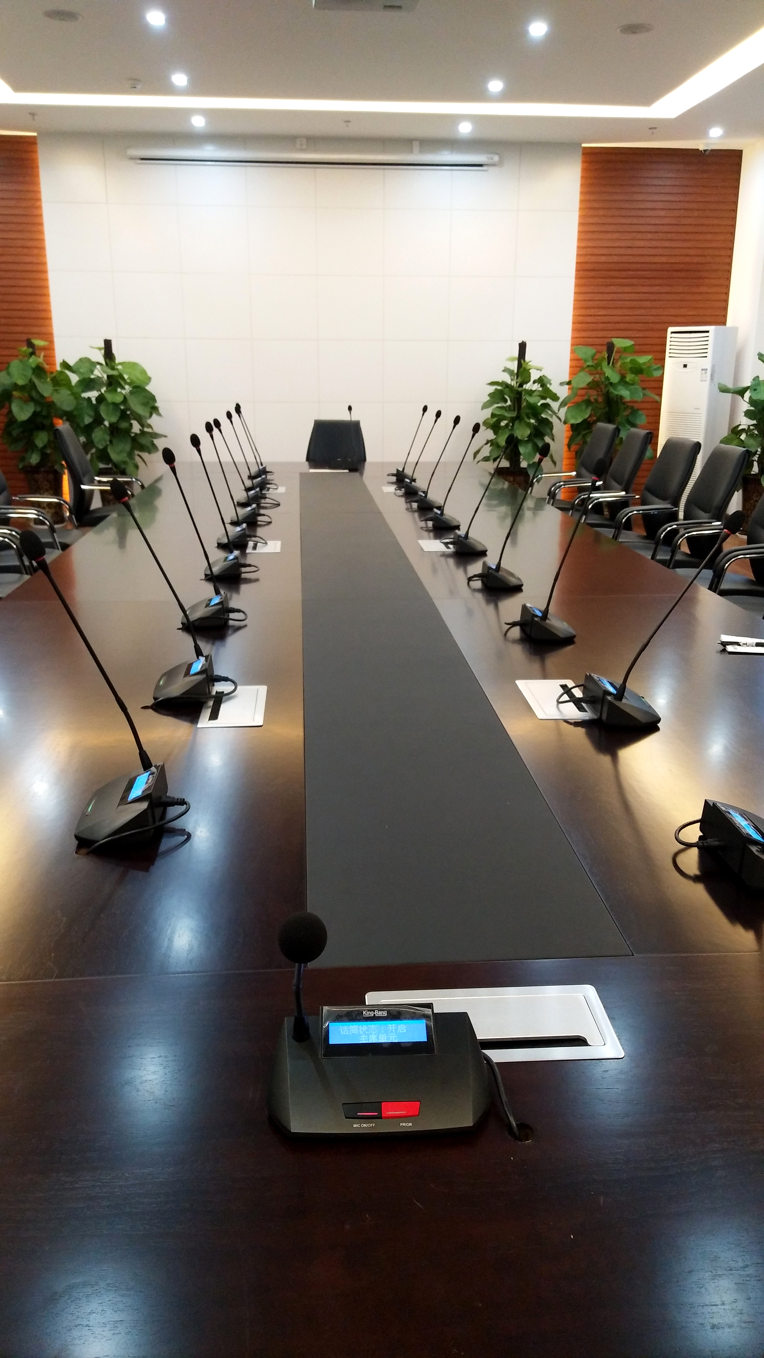 京邦(King-Bang)數字會議系統的打造改變了萬誠國際中心傳統會議模式的效率低、操作復雜、形式單一、資源浪費、保密隱患等問題,實現新型會議的全程無紙化概念。提供考勤管理、會議議程、會議投票、分組討論、資料查閱等多種功能,為其提供一個極為實用的會議平臺。