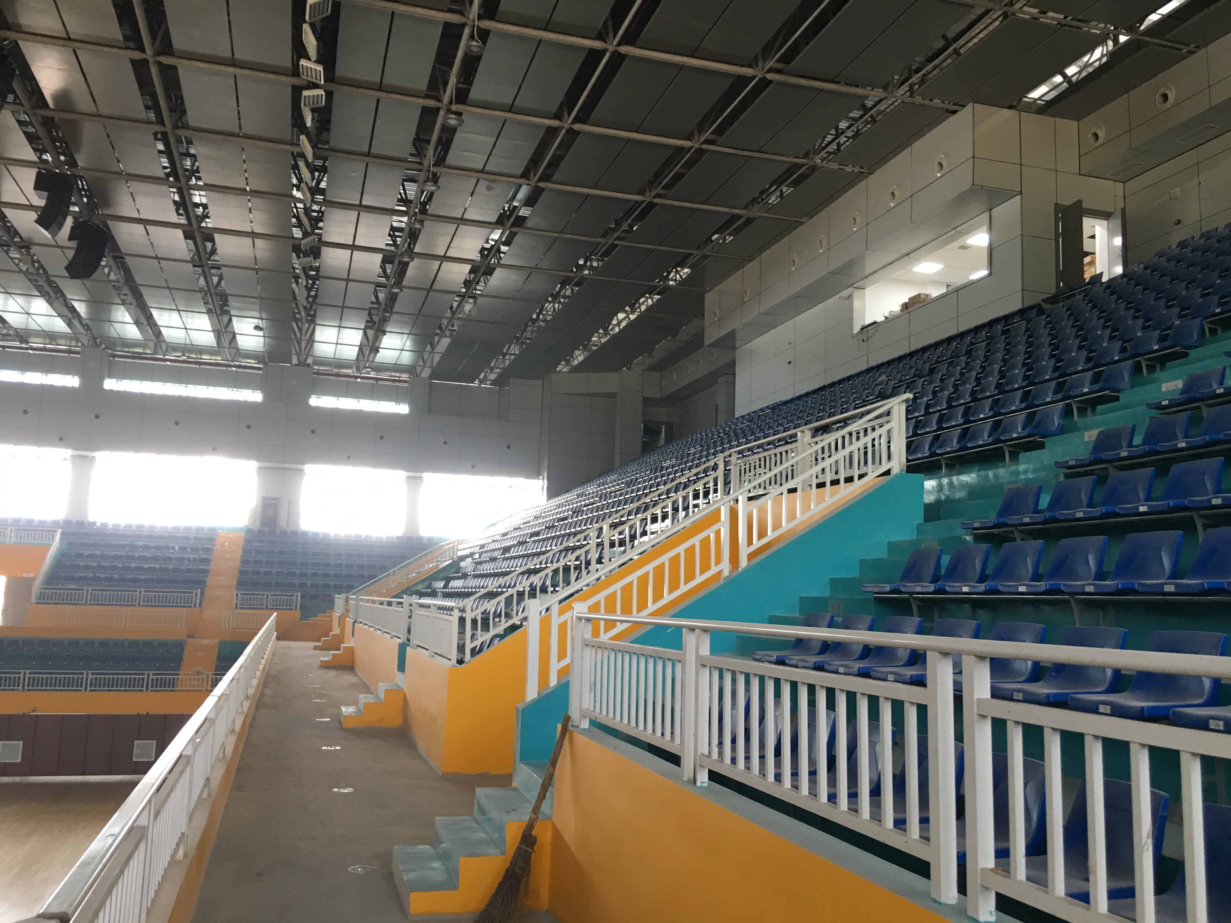 一.體育館主場(chǎng)館是方型的,四面都有觀眾席,其中一部分為流動(dòng)觀眾席,混響時(shí)間長(zhǎng),需要指向性較強(qiáng)的揚(yáng)聲器;