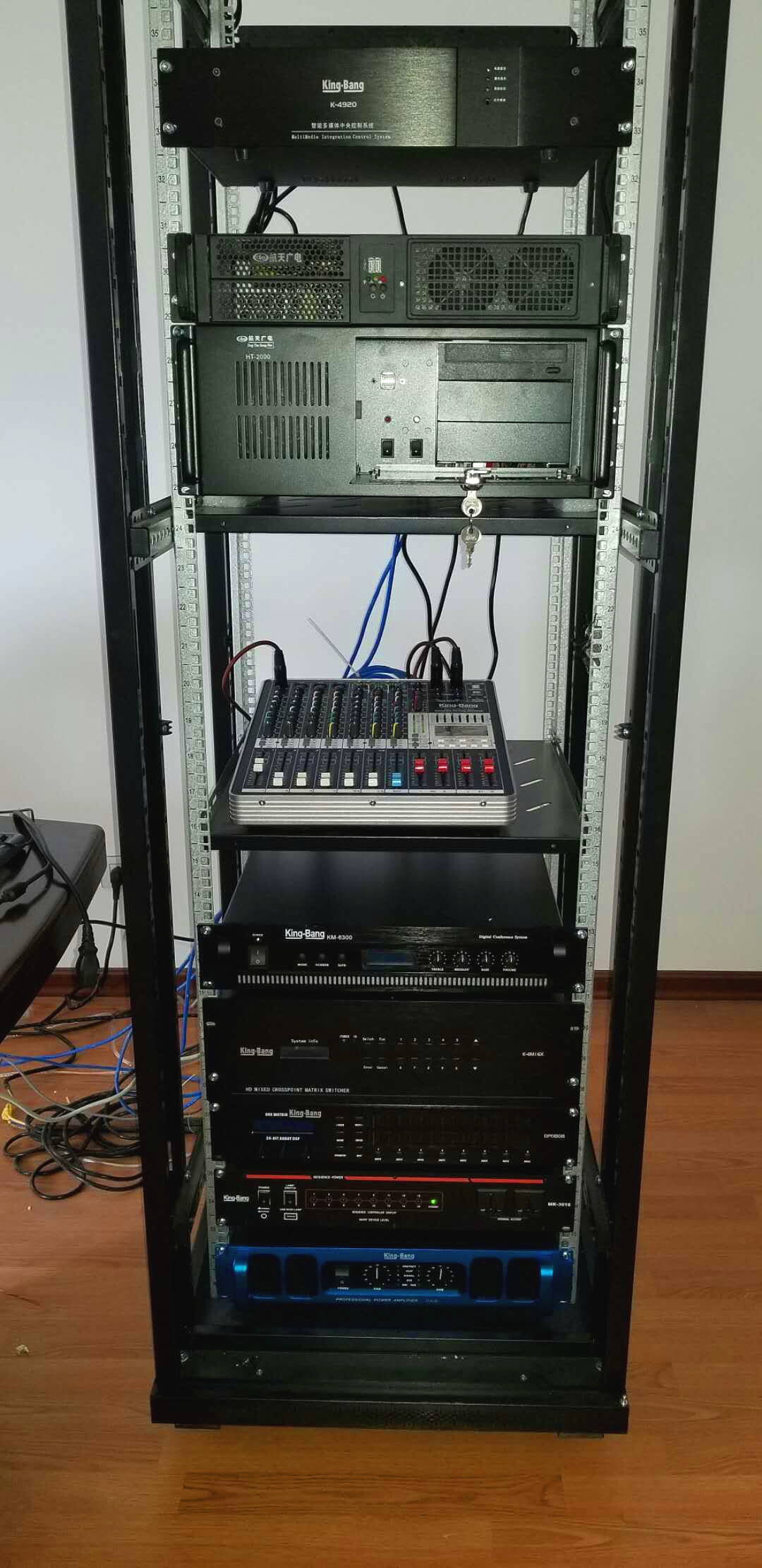 音視頻切換系統:選用京邦電子(KING-BANG)MID系列高清混合插卡矩陣作為整個指揮中心信號切換的核心。無縫切換。防止切換過程中出現的延時、黑屏、卡頓等現象,信號切換順暢如絲,給與會者一種極好的視覺享受。DVD、電腦、播放器、硬盤錄像機、視頻會議終端等所有的設備都可以無縫切換至電視顯示大屏上。